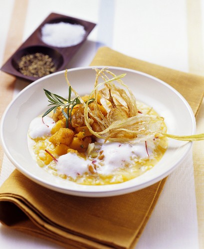 Bildunterschrift:Kürbisrisotto mit Ingwerschaum