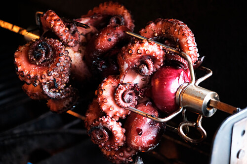 Bildunterschrift:Gegrillter Oktopus vom Spieß